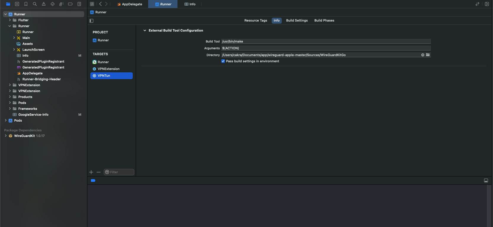 download wireguard-apple and Change the WireGuardKitGo directory with the directory you have.